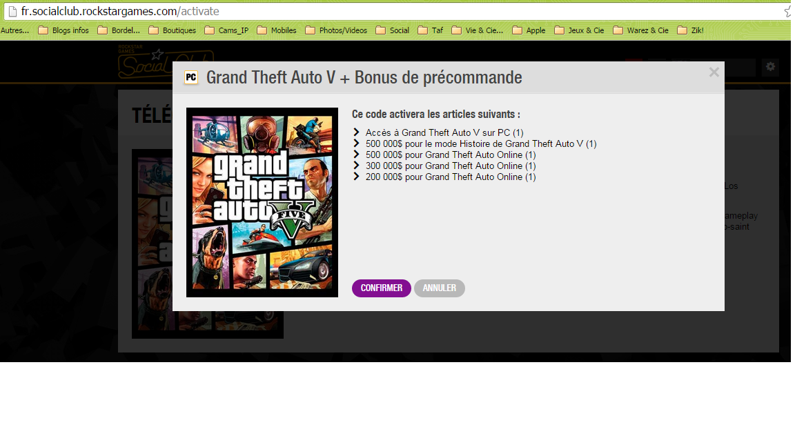 Confirmation de téléchargement de GTA V PC.
