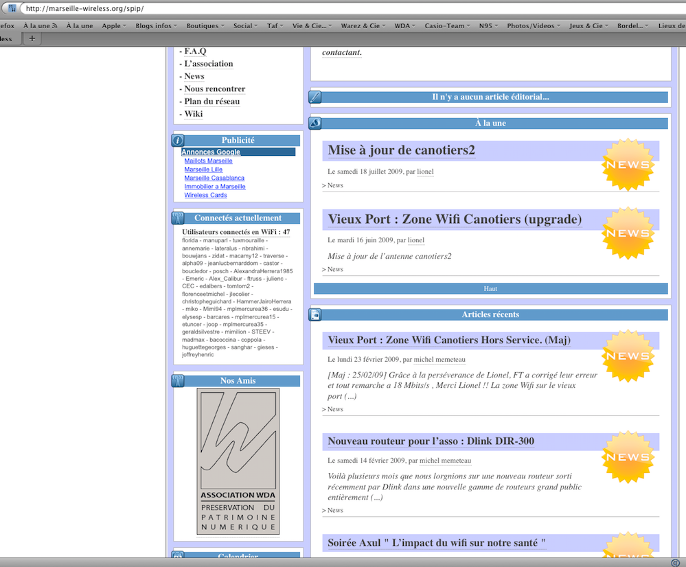 - Taux d'occupation des canaux WiFi via le tableau de bord interne de la Freebox v6 ("Revolution").
