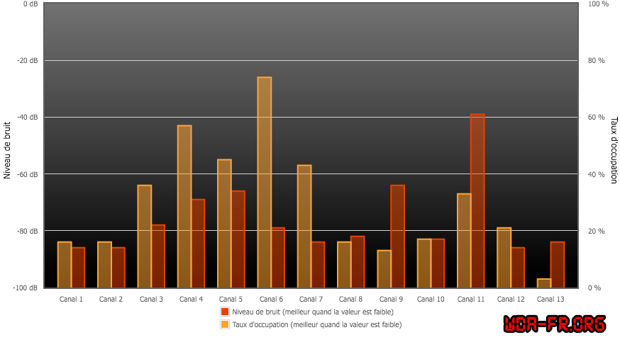 WiFi se recouvrent, et il est préférable d'être sur un canal fortement utilisé plutôt que juste a coté.
