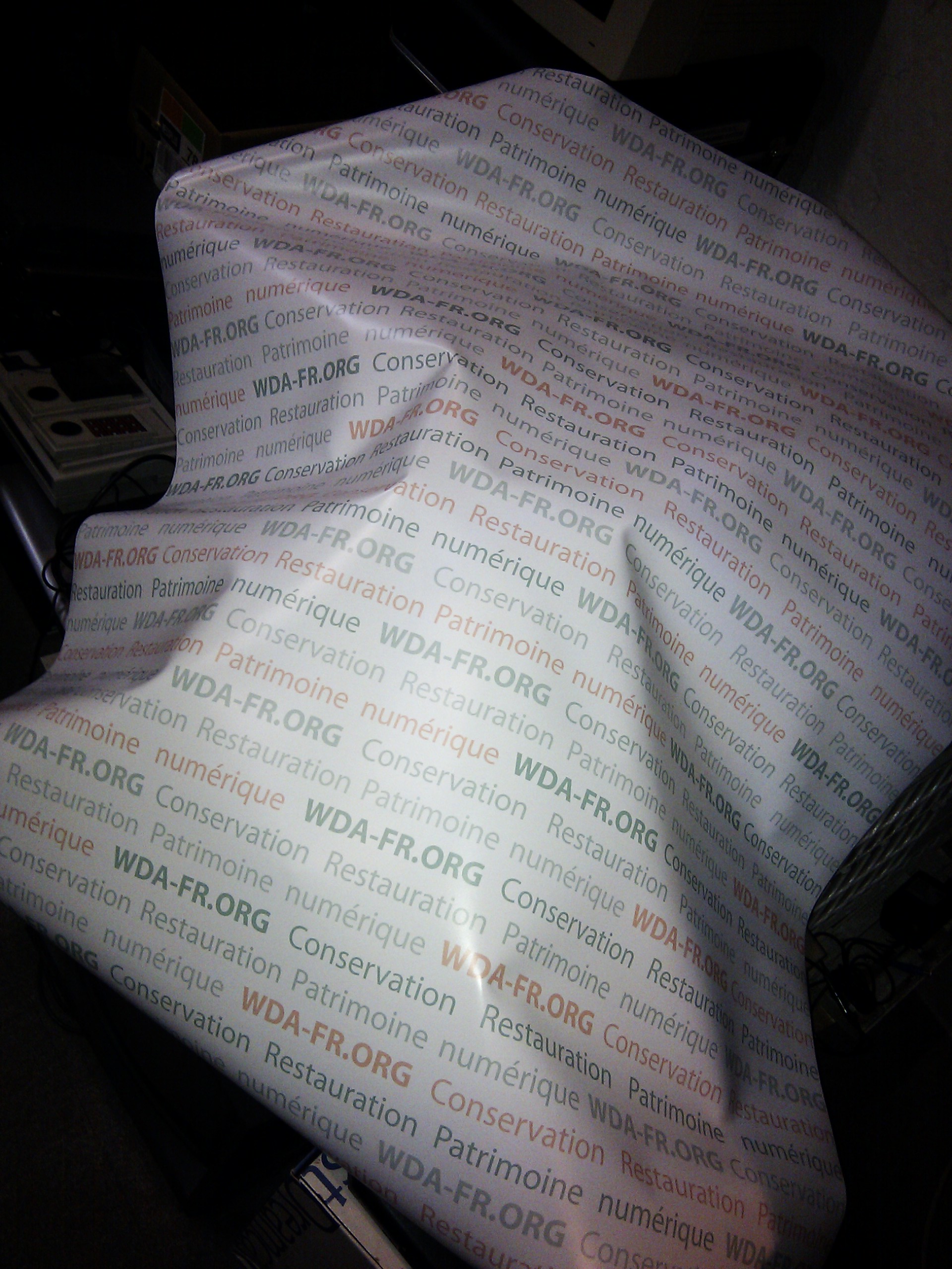 ::arrow: Encore pour le watermarking des photos HD de notre collection (comme citées plus haut), nous avons fait fabriquer fin 2014 (25/09/2014) une version plus fine de la bâche :
