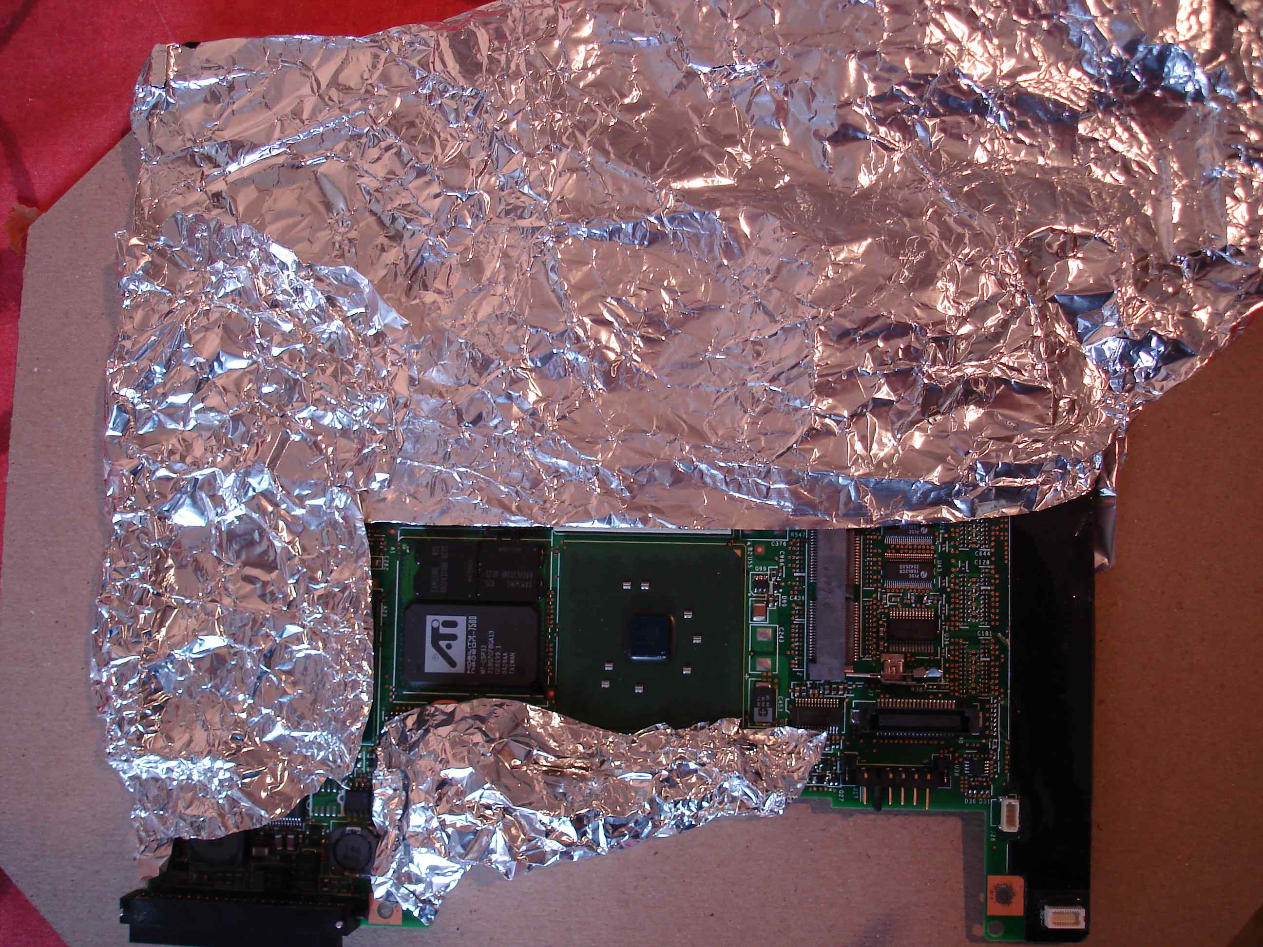 On y voit déjà un peu plus clair, le dénouement est proche, on voit bien l'objet du délit ,au centre (chipset ATI) !