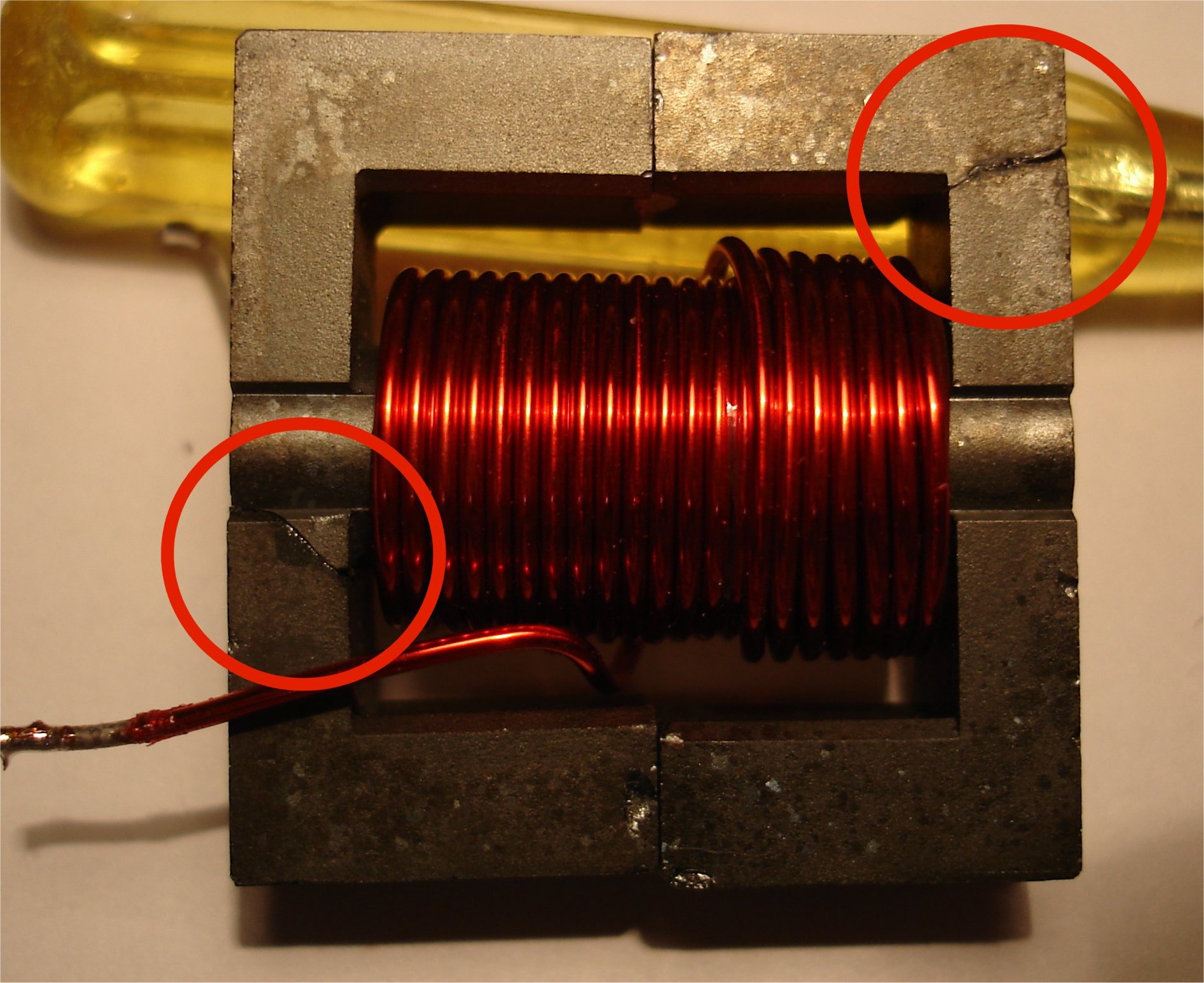 ::arrow: La ferrite d'une self dans la partie alimentation à découpage est cassée.