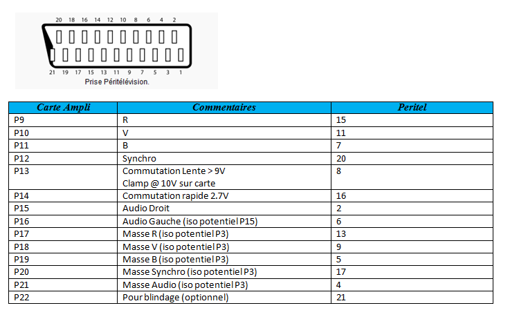 Connectez le P12 de la carte à la broche 20 de la Péritel.