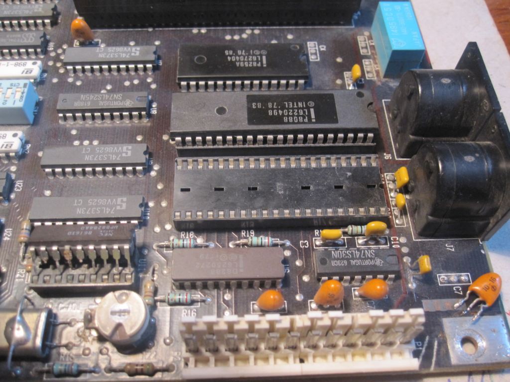 Un coup de testeur pour voir si ce signal arrive bien au circuit gérant le reset et l'horloge ( µPB8284), super ! il n'y arrive pas c'est donc qu'une piste est coupée, en fait non, ce n'est pas une piste, le 8284 et son support sont bouffés par la corrosion.
