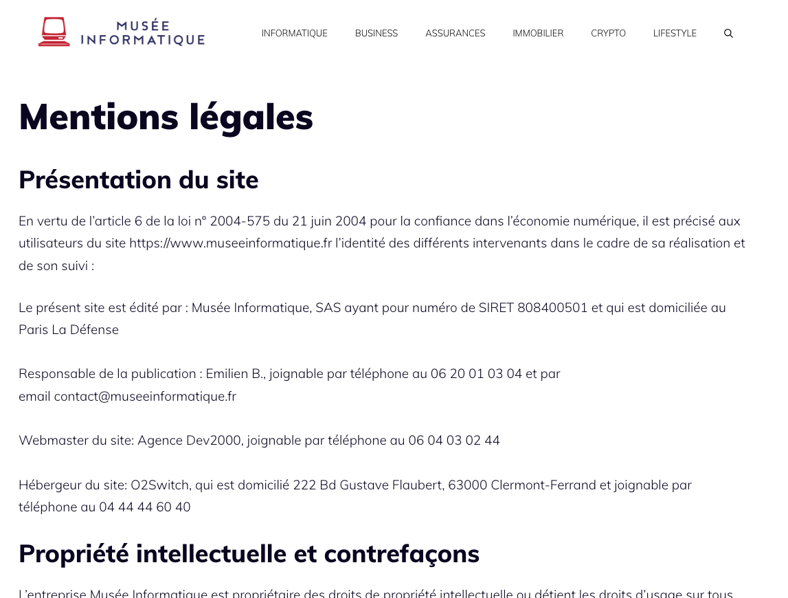 Mentions légales du site museeinformatique.fr le 16 Aout 2022.