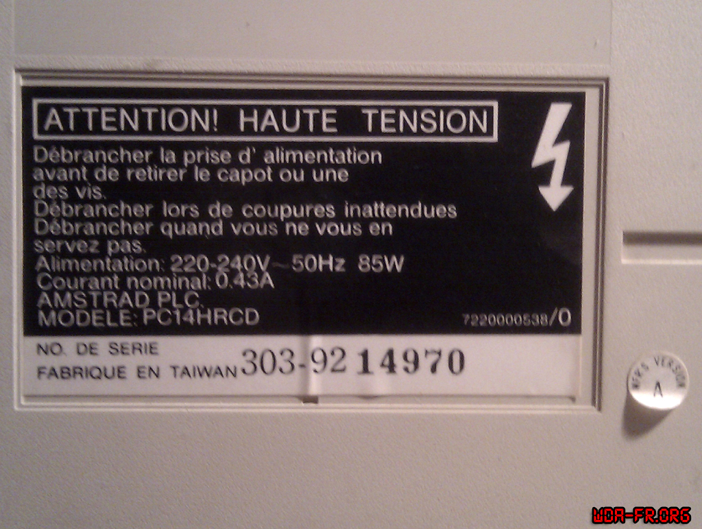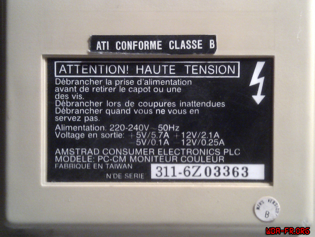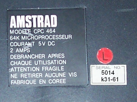 Tous les matériels Amstrad semblent avoir une lettre de version sur le même principe... Des moniteurs aux ordis en passants par la console GX4000...