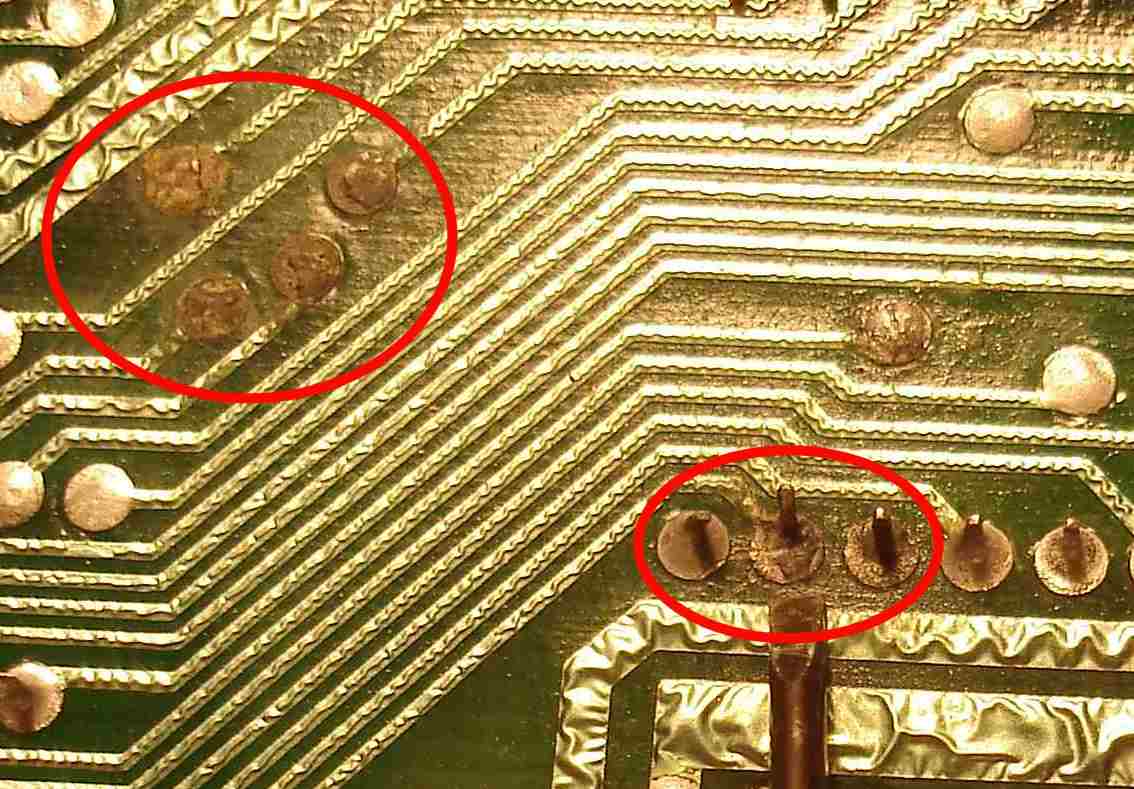 Cerise pourrie sur le gâteau moisi, la soudure la plus en haut à gauche ne fait pas contact avec la face composant, la métallisation est donc pourrie elle aussi.