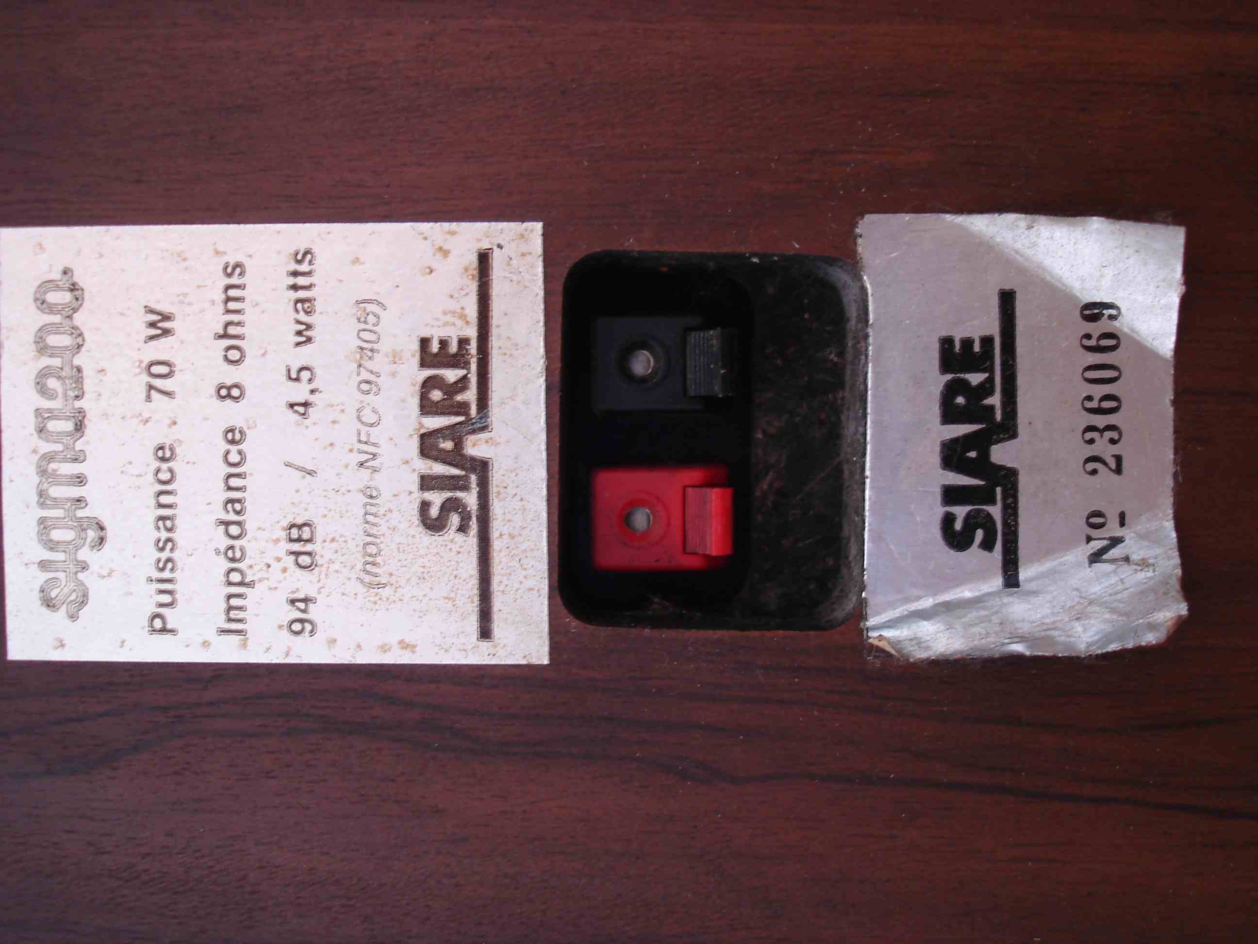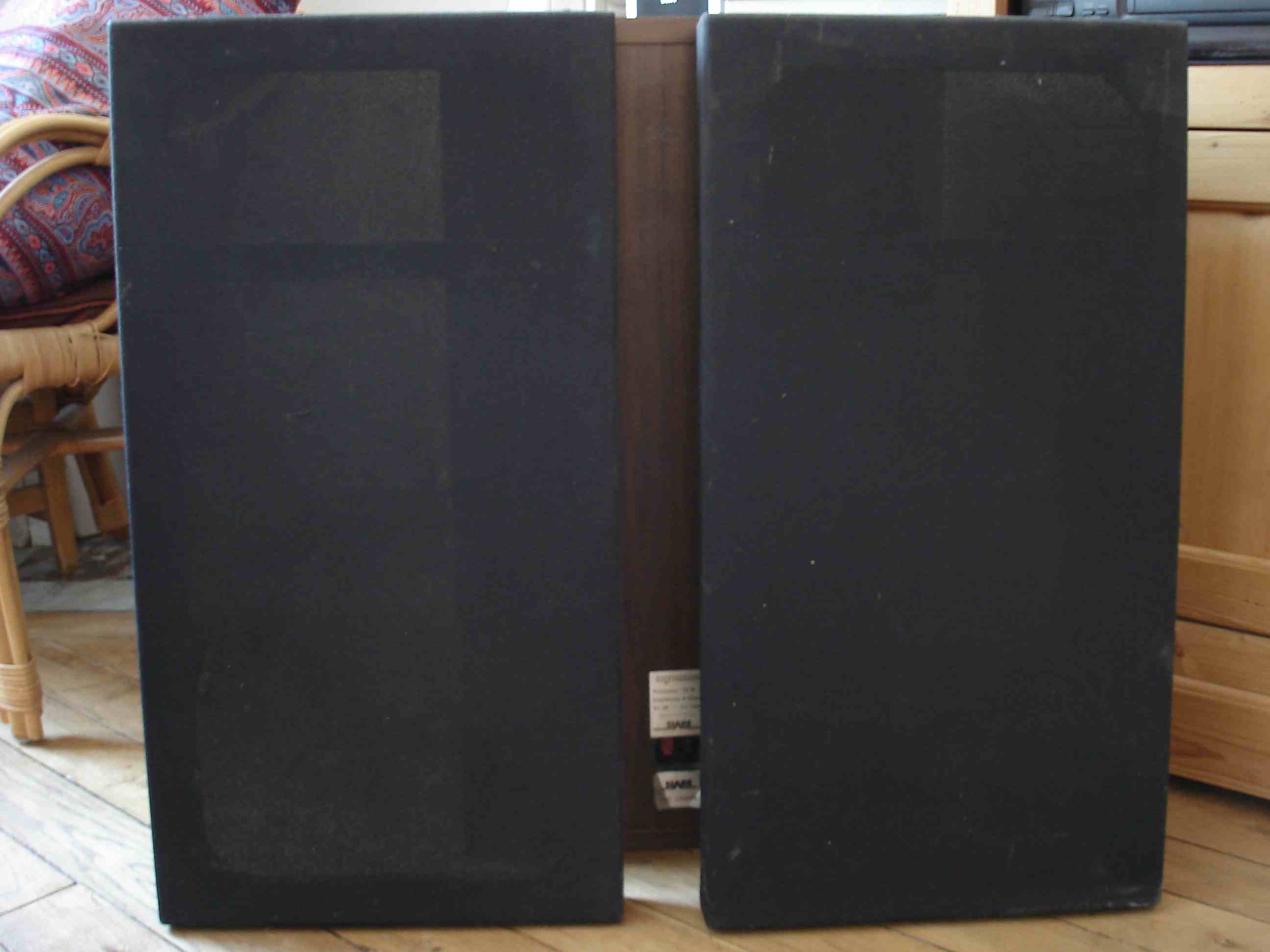 Je vends une paire d'enceintes SIARE SIGMA 200, ce sont des 8 ohms, 70 watt efficace et ont une sensibilité de 94 db. Les boomers ont été changés par des Audax PR240 M6, les suspensions sont en bon état mais une enceinte donne moins d'aigües que l'autre. Les toiles de face avant sont en bon état mais mériteraient un petit nettoyage ::oops: