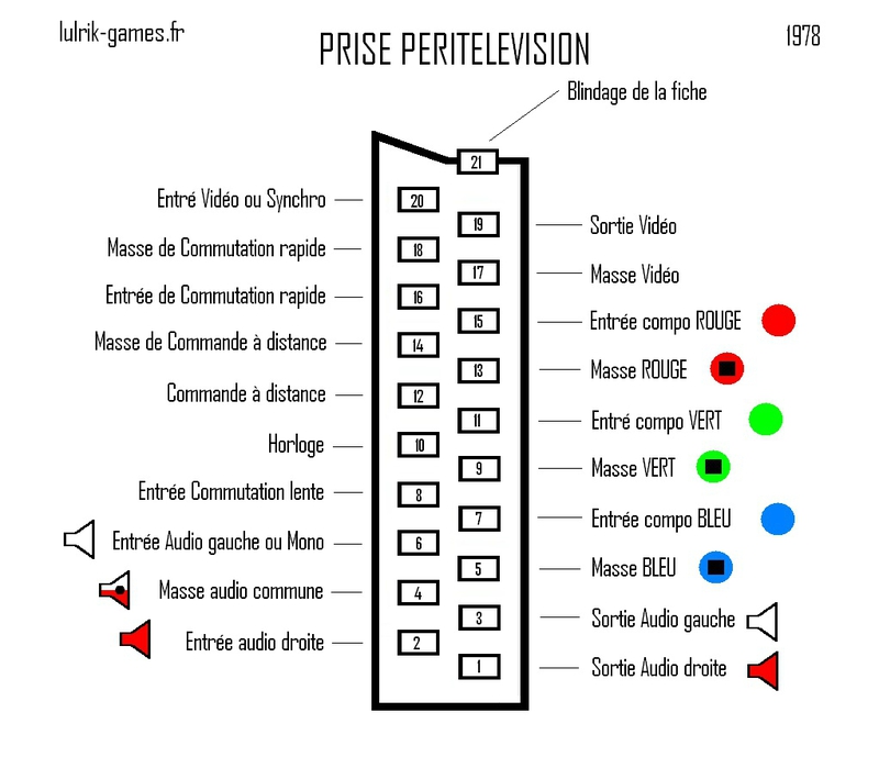 Si ça ne marche pas : essayer de connecter P15 à la broche 1 de la péritel et P16 à la broche 3 de la péritel.