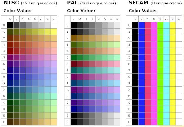 Nous avions donc en France et dans d'autres pays qui utilisaient le SECAM une palette de couleurs un peu psychédélique :
