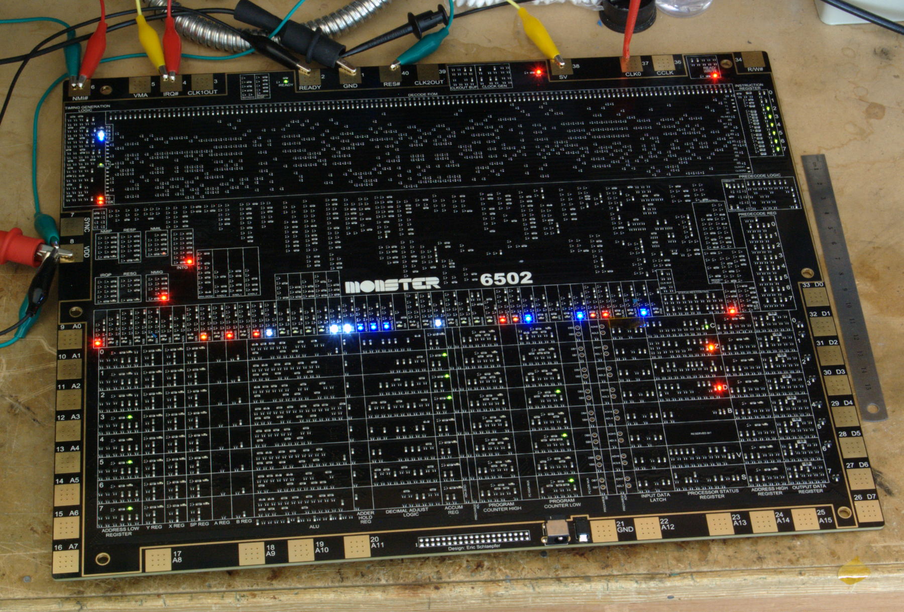 Par rapport au design original, des leds et leurs transistors drivers et résistances ont été rajoutés pour visualiser les états internes du processeur portant le nombre total de transistors à 4360