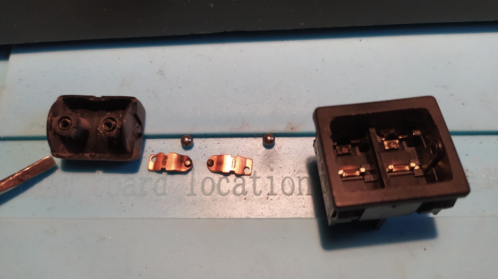 L'interrupteur secteur a une résistance d'une trentaine d'ohms au lieu de 0 :eh: , démontage, nettoyage puis remontage. Si ce type d'inter se démonte très facilement, le remontage est une autre paire de manche la faute aux 2 petites billes en acier.