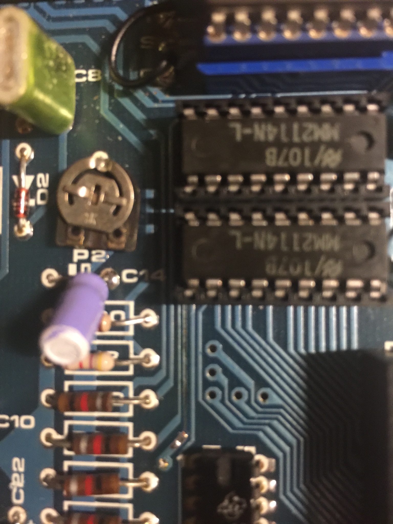 Ensuite sacrifice des "buffer/tampon" (IC10/9 + IC12/11) respectivement 74ls241 et 74ls243, coupé les "pattes" mettre des supports et remettre les CI idoines ! Du coup vérification des tension, masse etc.... Bizard les deux ram n'ont pas de masse ???? Évidemment la petite fumée c t simplement la piste qui relie la masse à ces deux mémoires... Pourquoi ? Aucune idée ? J'ai testé les ram (2114) sur une des carte "mère" pas de problème !?