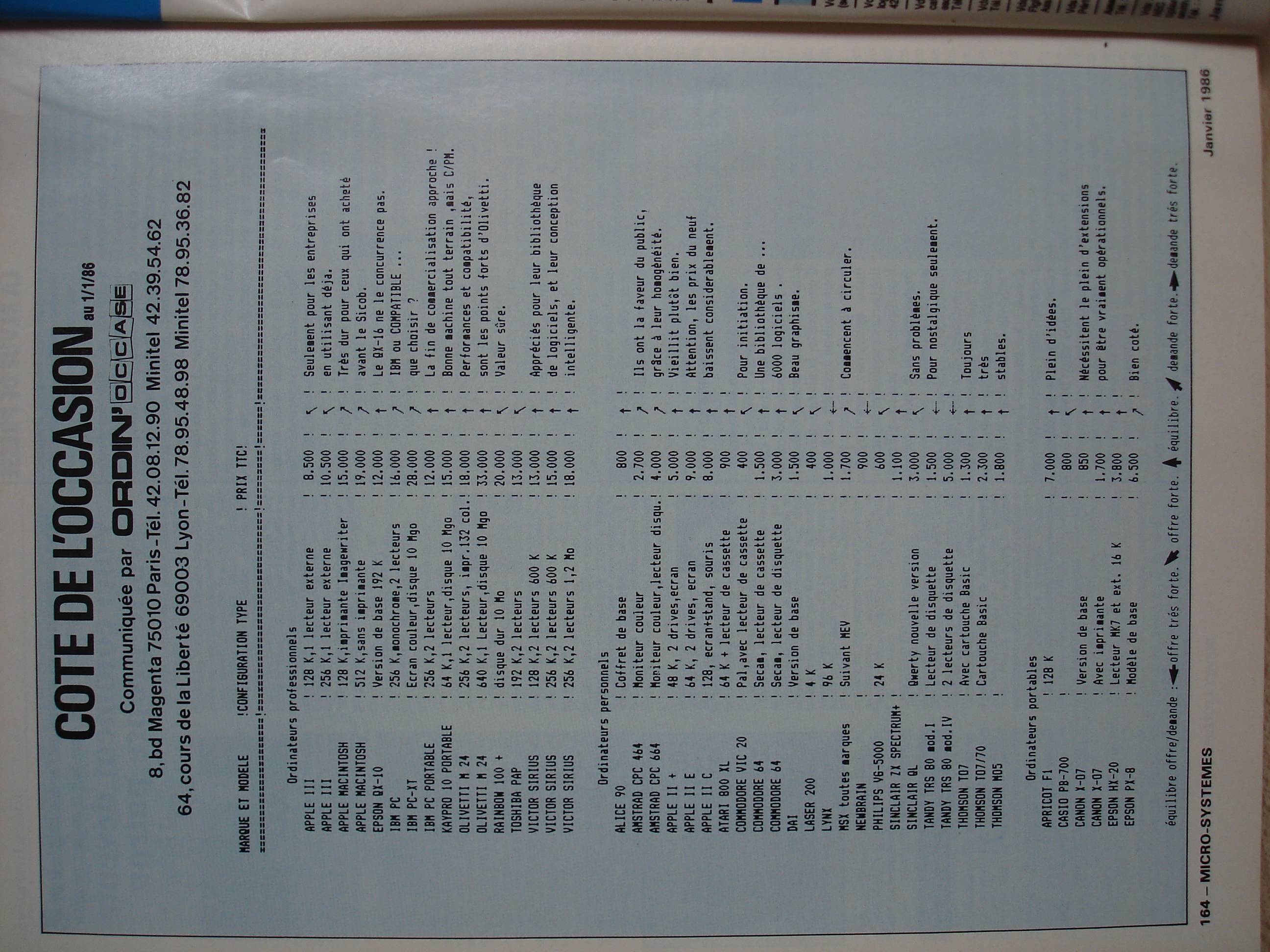 Une côte de l'occasion datant de janvier 86 et des pubs de matériel neuf.