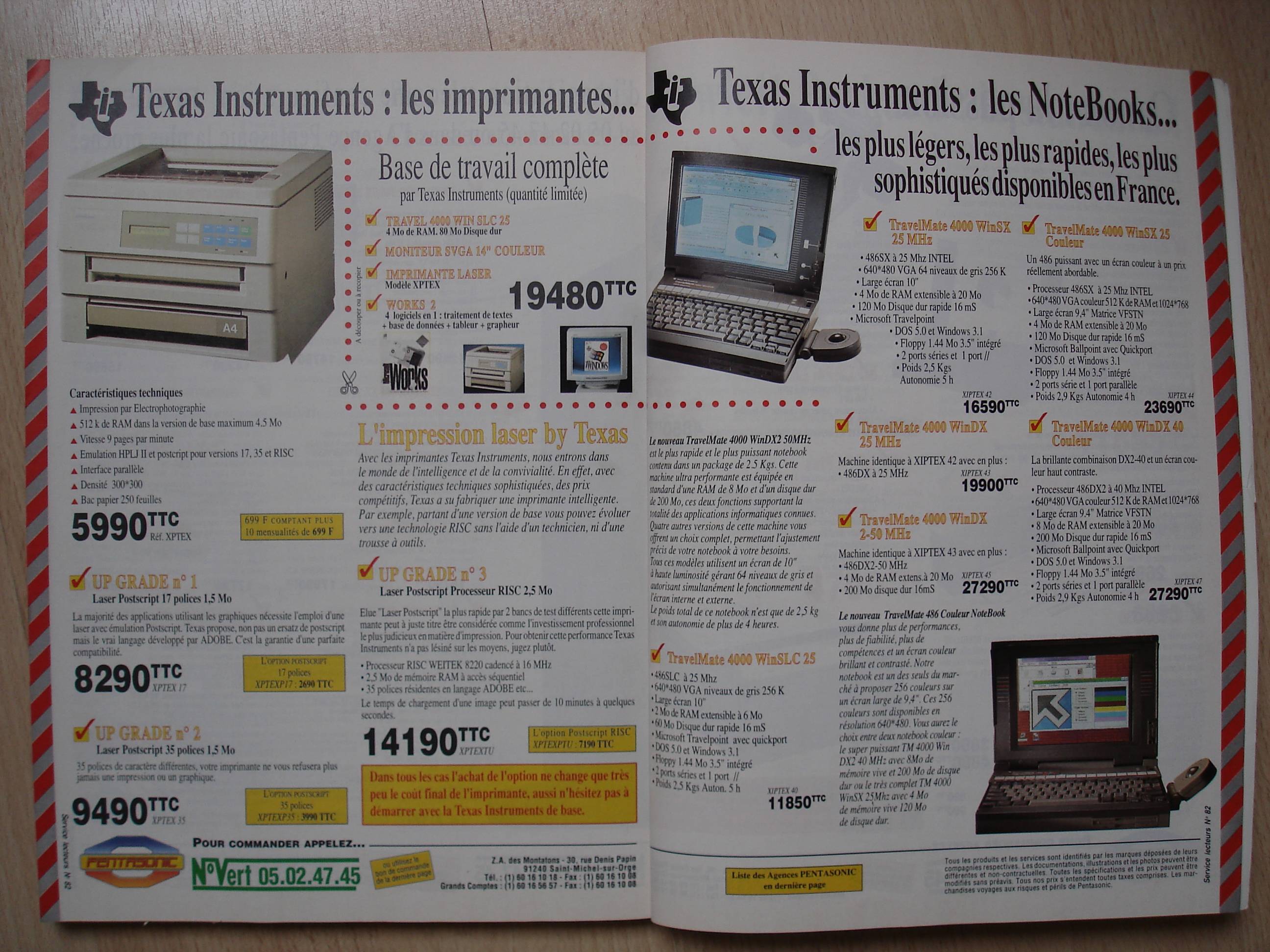 Toshiba 1910 CS, 8 Mo de Ram 486SX33 et un disque de 1.2 Go qui fonctionne avec un boot manager spécifique car la machine n'accepte pas de disque supérieur à 500Mo le tout sous Windows 95. L'écran, 640X480, est une matrice passive vraiment pas terrible ::cry: . Le seul avantage par rapport au 4400SXC c'est la présence d'un port PCMCIA.