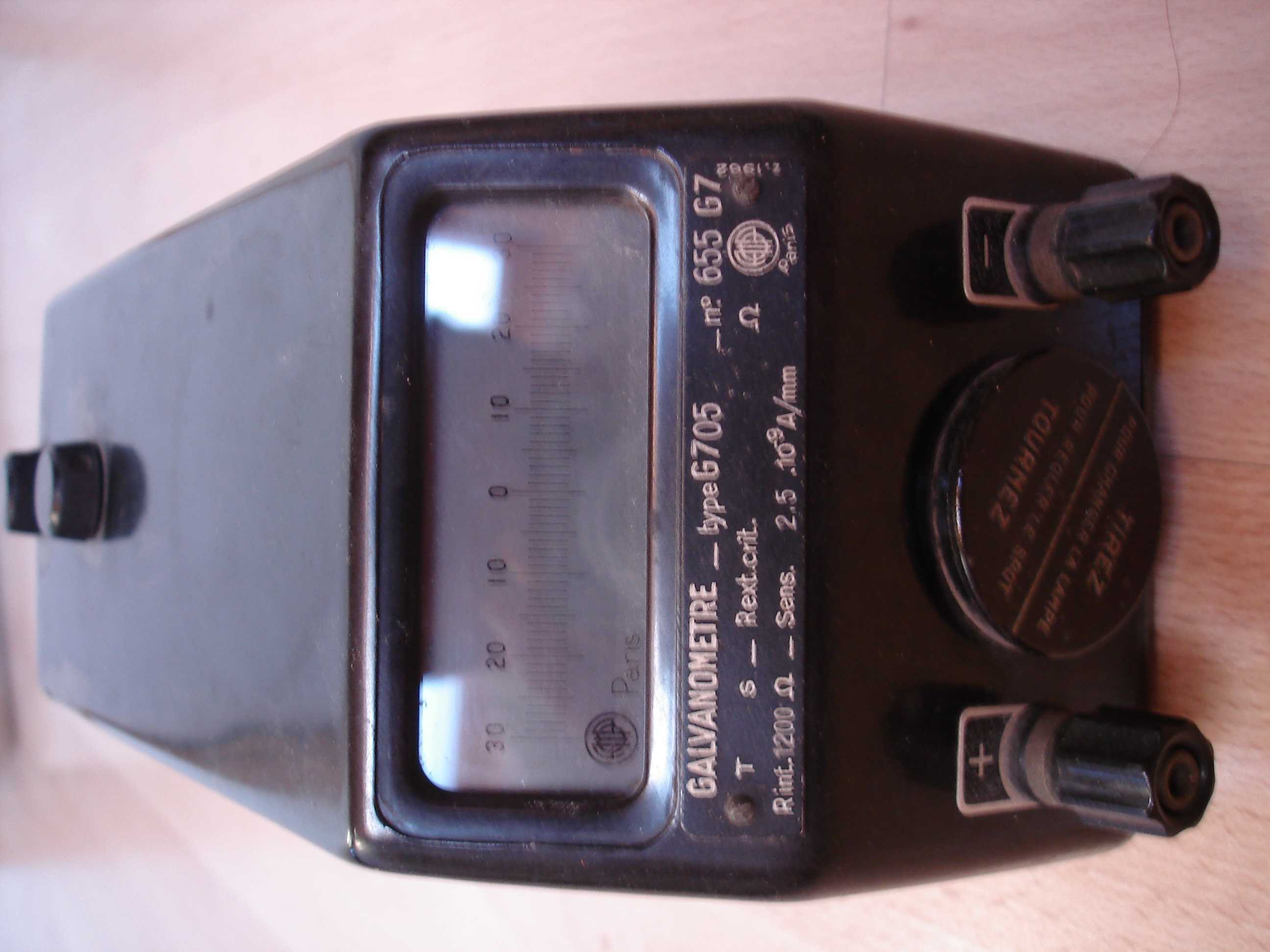 Un galvanomètre à miroir AOIP G705 des années 60, notez la sensibilité extrème qui est de 2,5 NANO ampère par division !