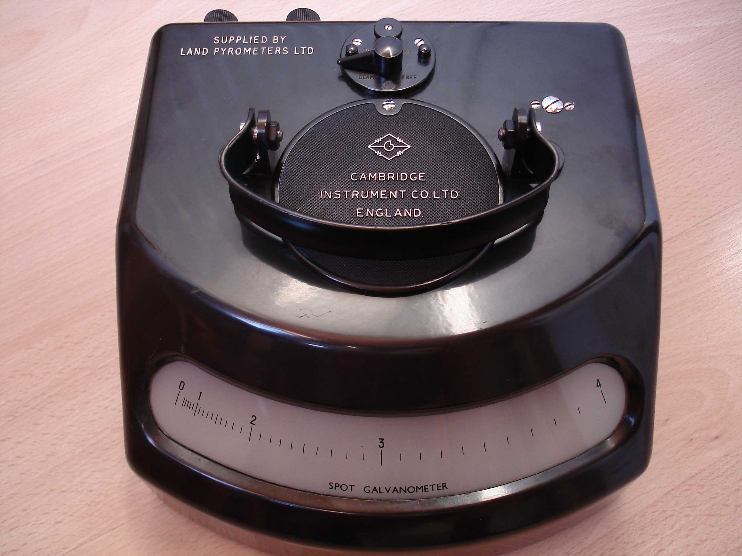 Un autre galvanomètre à miroir de marque Cambridge Instrument en parfait état celui là. Il a une sensibilité d'environ 3milli-volt à pleine échelle.