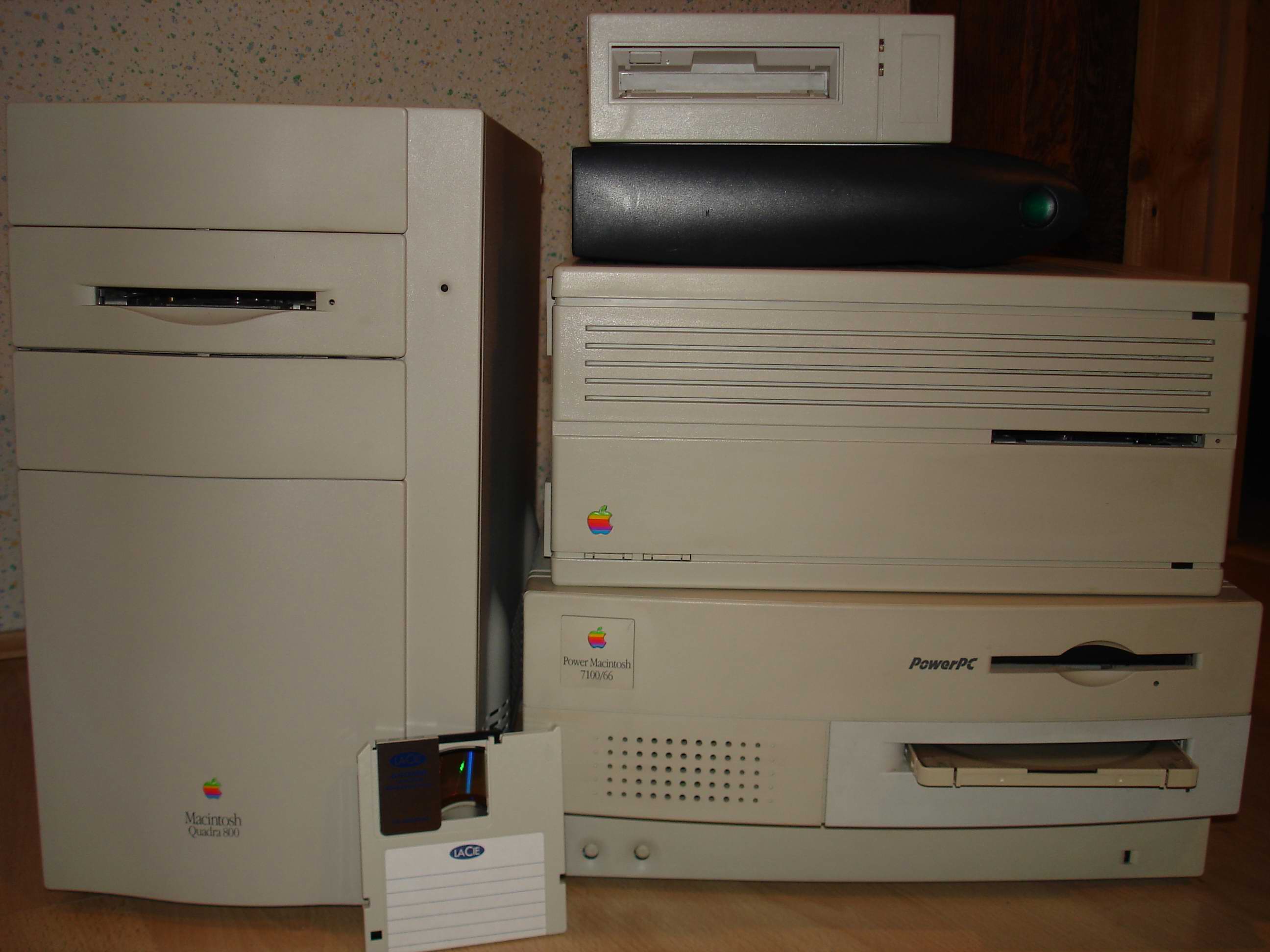 Un Powermac 7100/66, un Mac II Ci transformé en Quadra 650, un Quadra 800 (merci à Mr PRUVOST pour ce don généreux !), un disque D2 (design Starck ), un magnéto-optique 650 et sa cartouche.