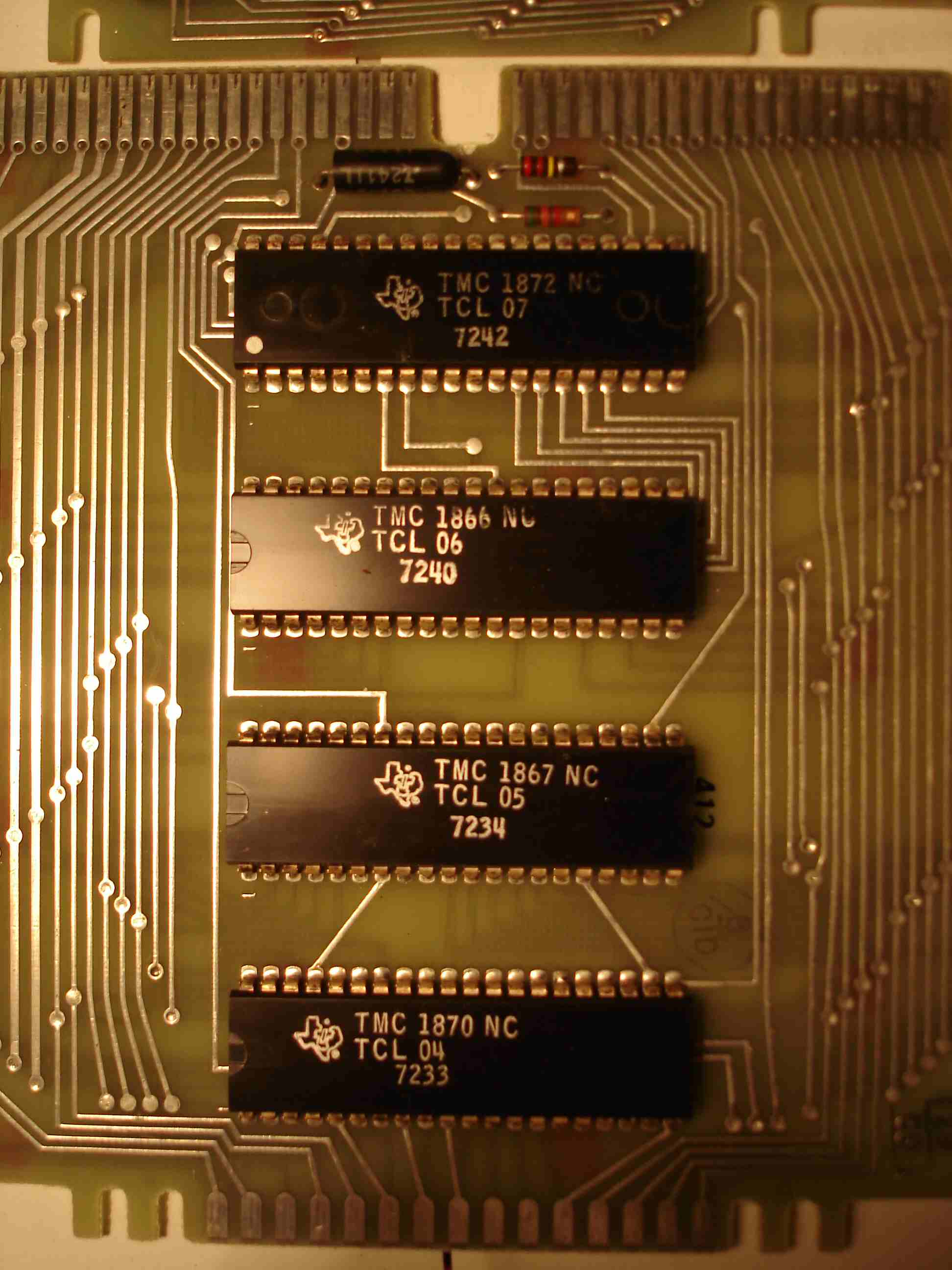 Vous êtes peut-être étonnés du nombre de cartes réalisées avec mes petites mains mais il faut savoir qu'à l'époque beaucoup de magasin vendait le circuit imprimé nu de nombreuses cartes à prix cassées y compris la carte mère de l'APPLE 2 +, j'ai même eu un collègue qui s'est construit un compatible PC :eek: .