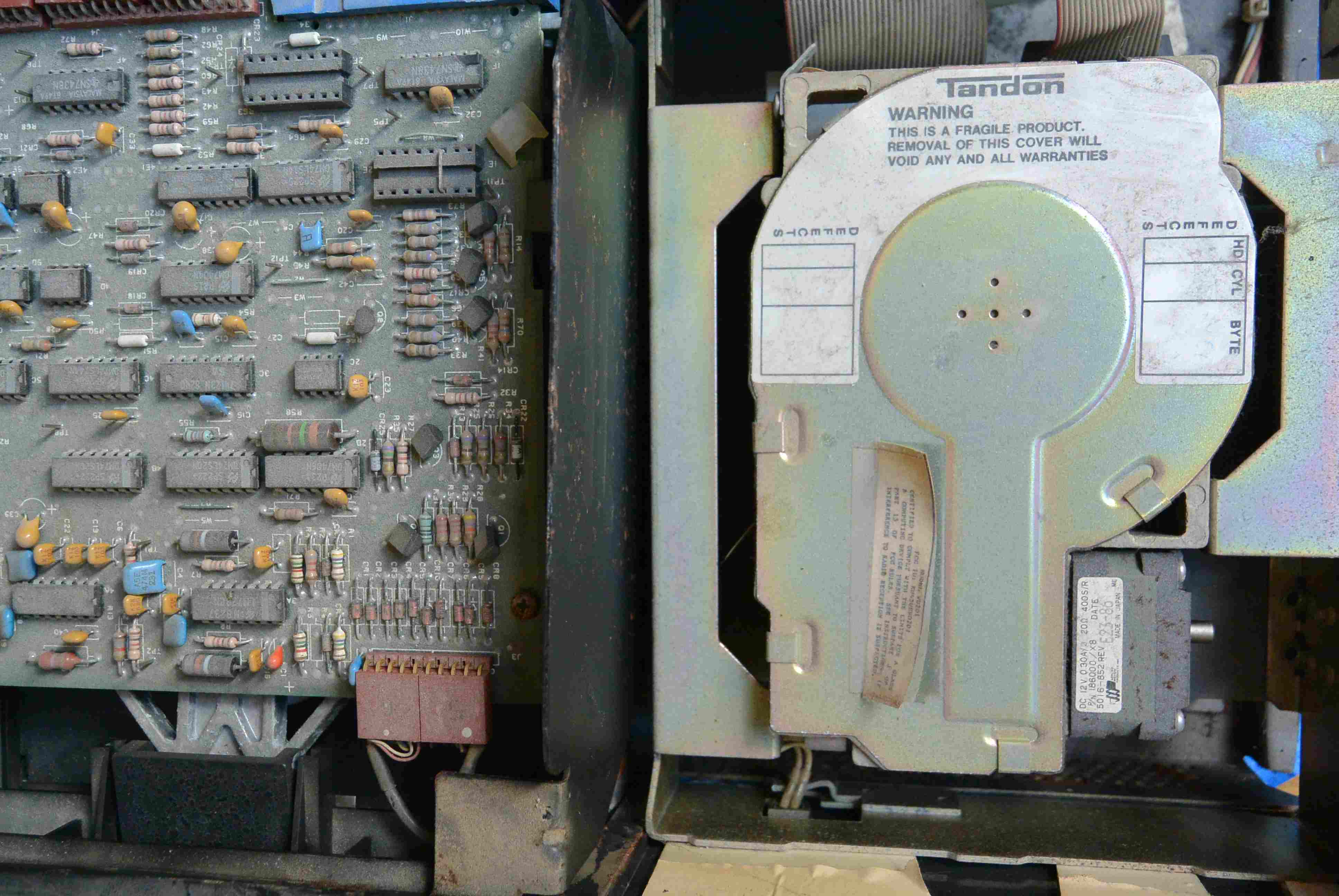 Le floppy est bien sale, des transistors sont un peu écrasés. Il y a de la rouille sur le moteur de d'avance têtes du disque dur :-/