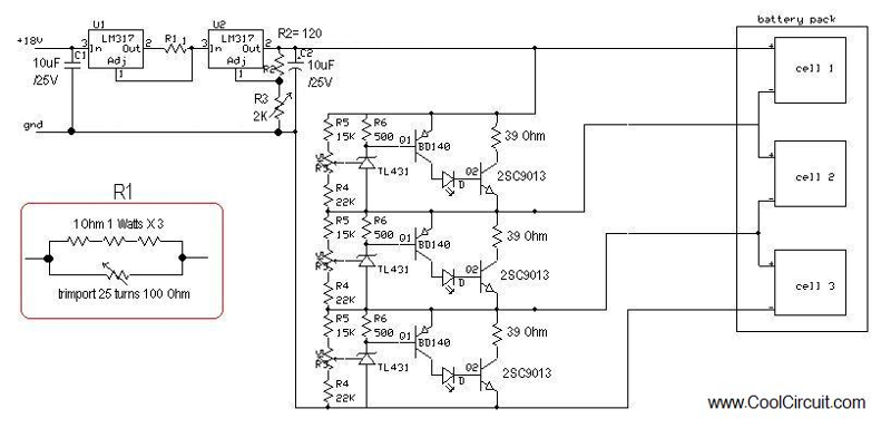 — Il y a plusieurs techniques pour recharger ces accus. Pour ma part, j'ai utilisé la technique”liposave” : une diode Zéner de puissance, branchée en parallèle sur l'accu et draînant la tension en trop par rapport au réglage ! Mais voyons comment…