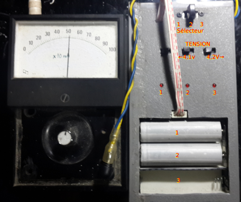 — Et maintenant, la charge de batteries Li-Ion de récup' d'ordinateurs portables… Ce genre de batteries, il faut faire gaffe ! Ils ne supportent pas une tension de charge de plus de :