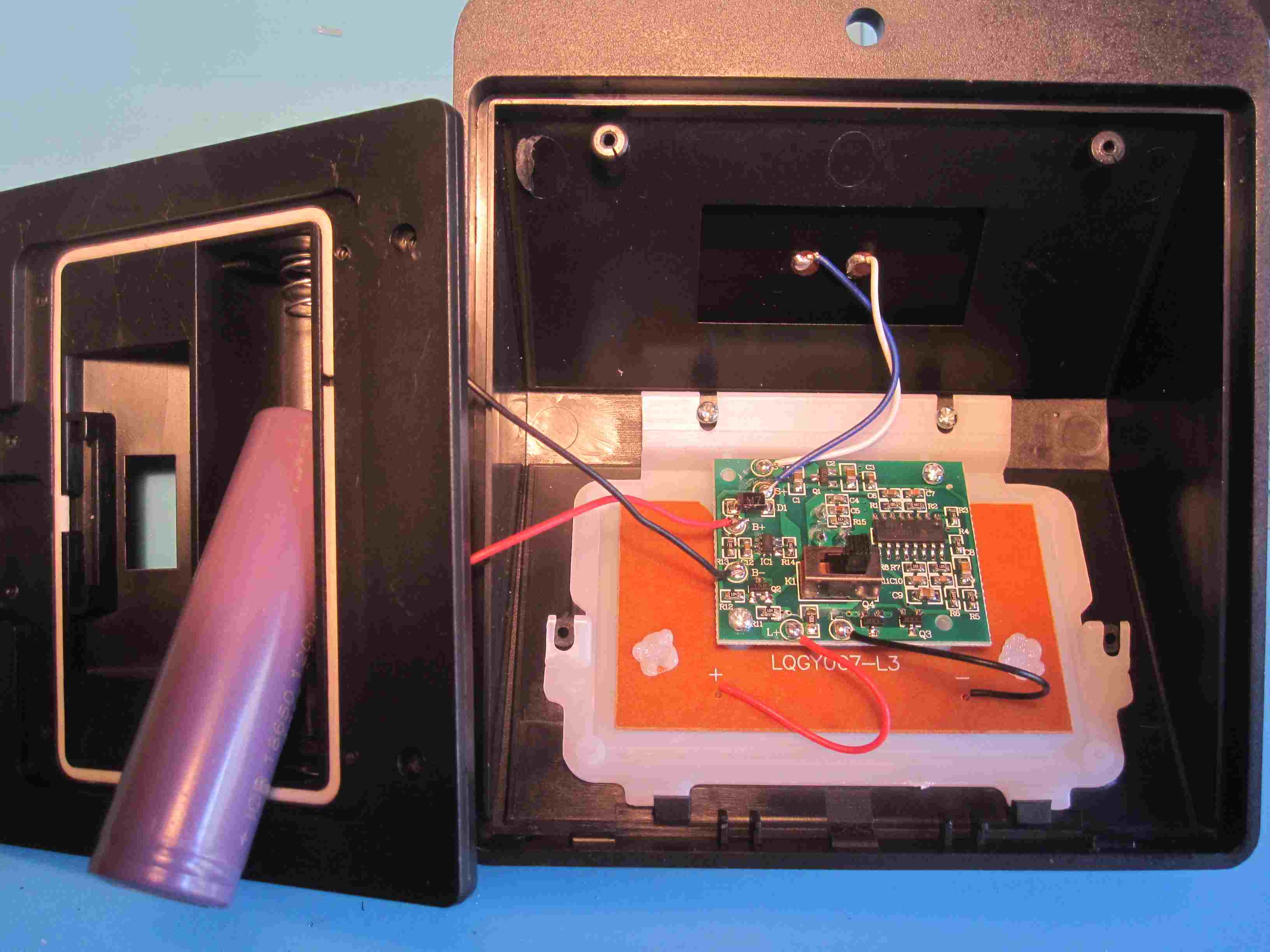 Allez hop, démontage... Sympa l'accu standard de type 18650, sa capacité est 1200Mah.