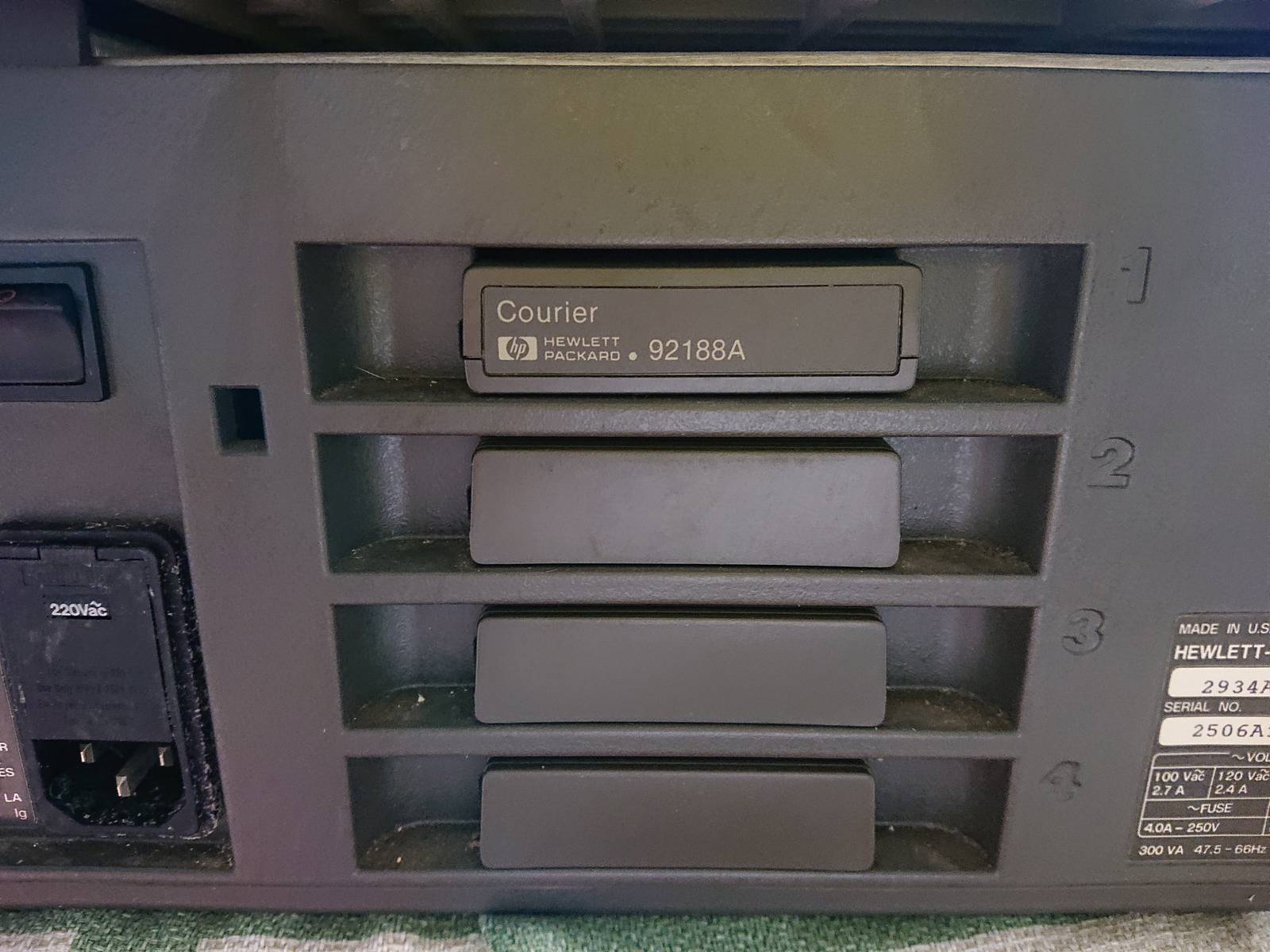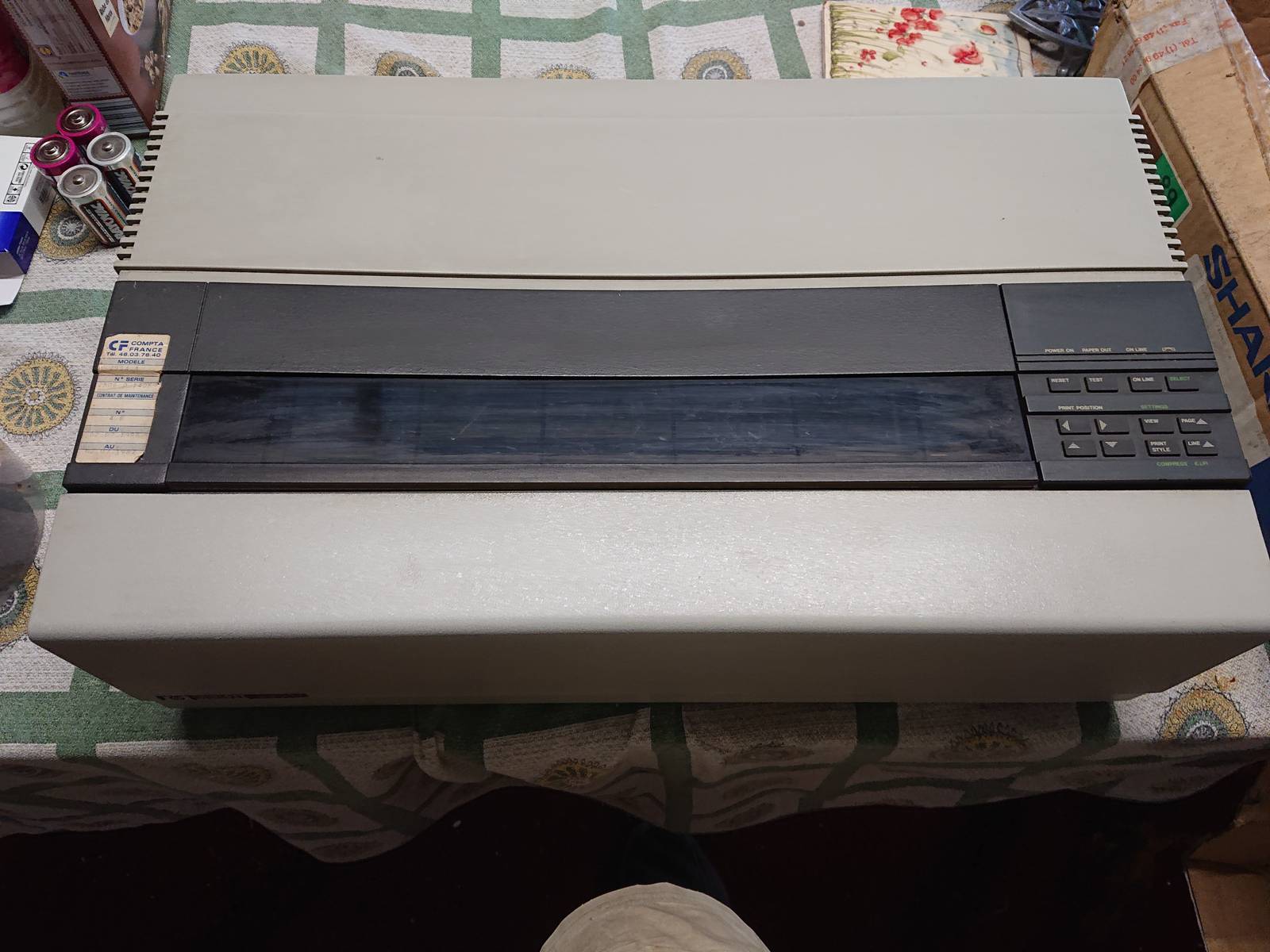 Une imprimante matriciel HP et sa cartouche de police