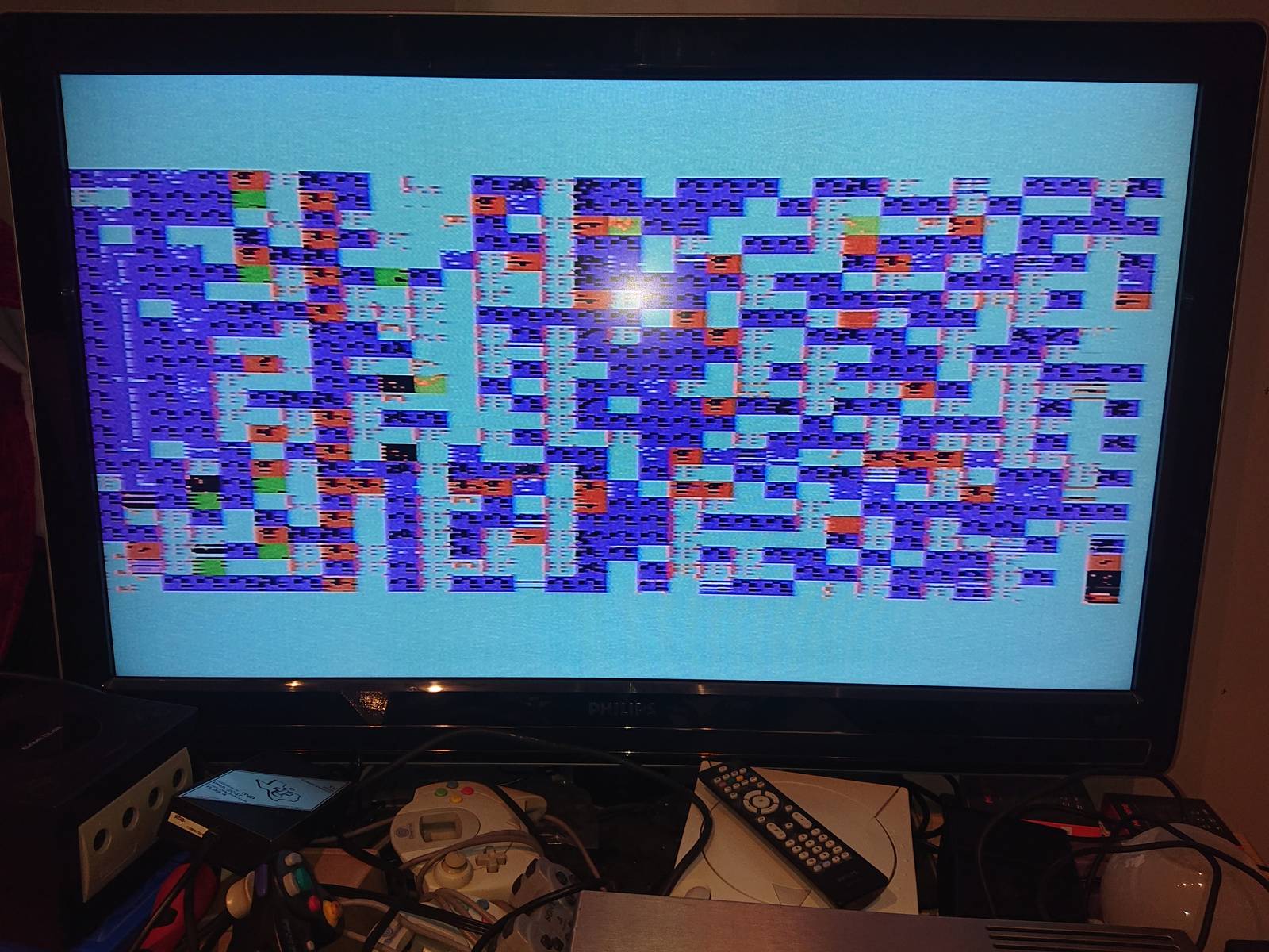C'est pas beau, mais ça démarre et le son fonctionne. L'image change en permanence. Fin du test. J'imagine alors un pb de RAM ou du circuit vidéo.