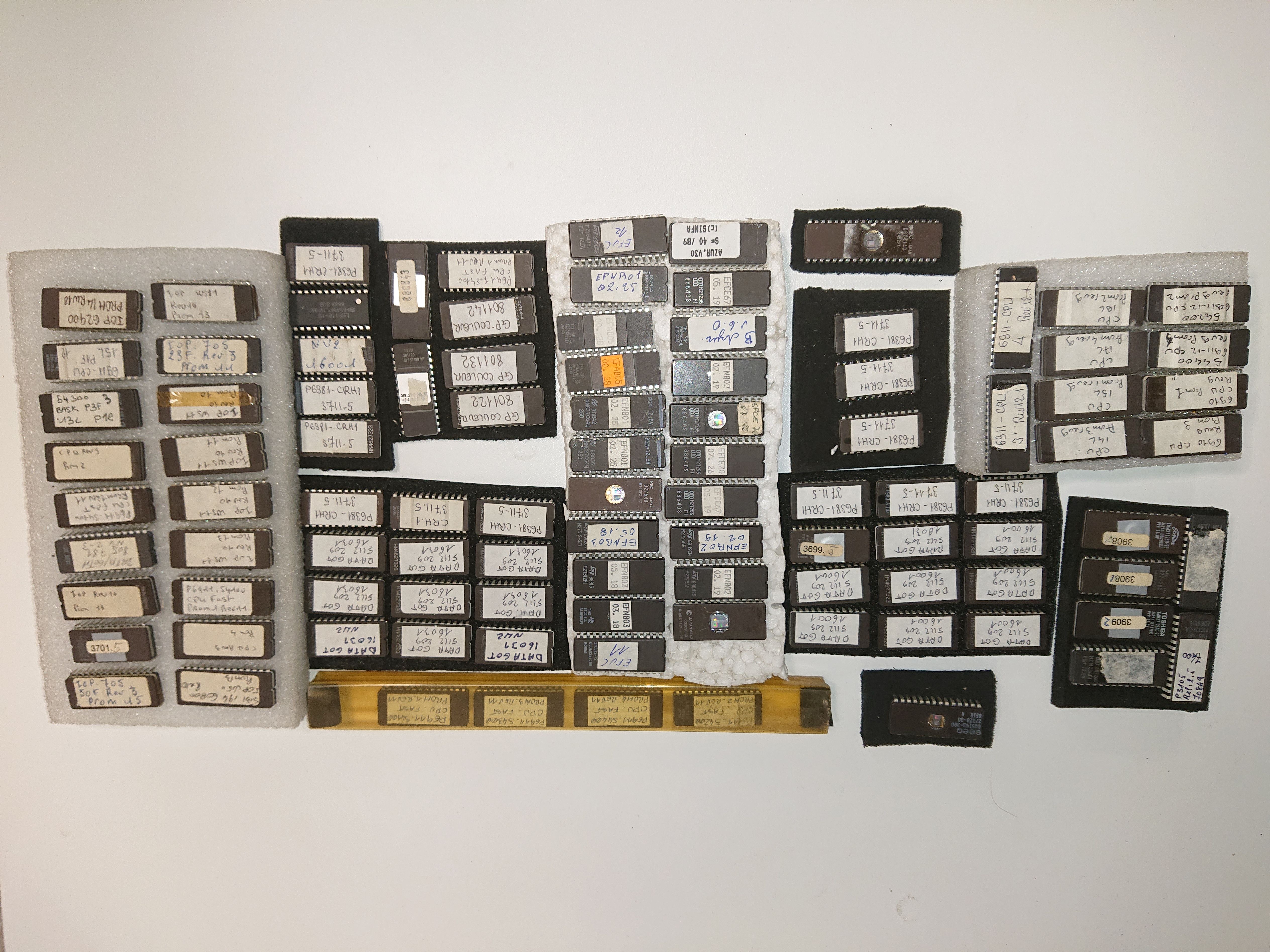 Bonjour, les eproms et les CI c'est de la récup de poubelles en 1994. Aucune idée du contenu.